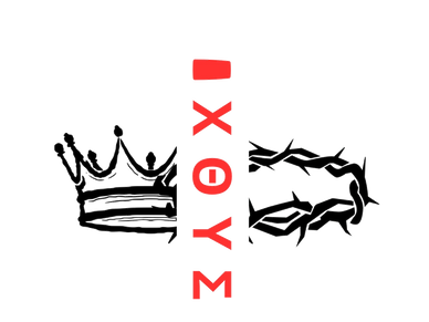 This powerful design features Two Crowns—the majestic crown symbolizing Jesus as the King of Kings, and the Crown of Thorns, a solemn reminder of His suffering and sacrifice on the Cross. At the heart of the design is the Ichthys symbol boldly proclaiming: